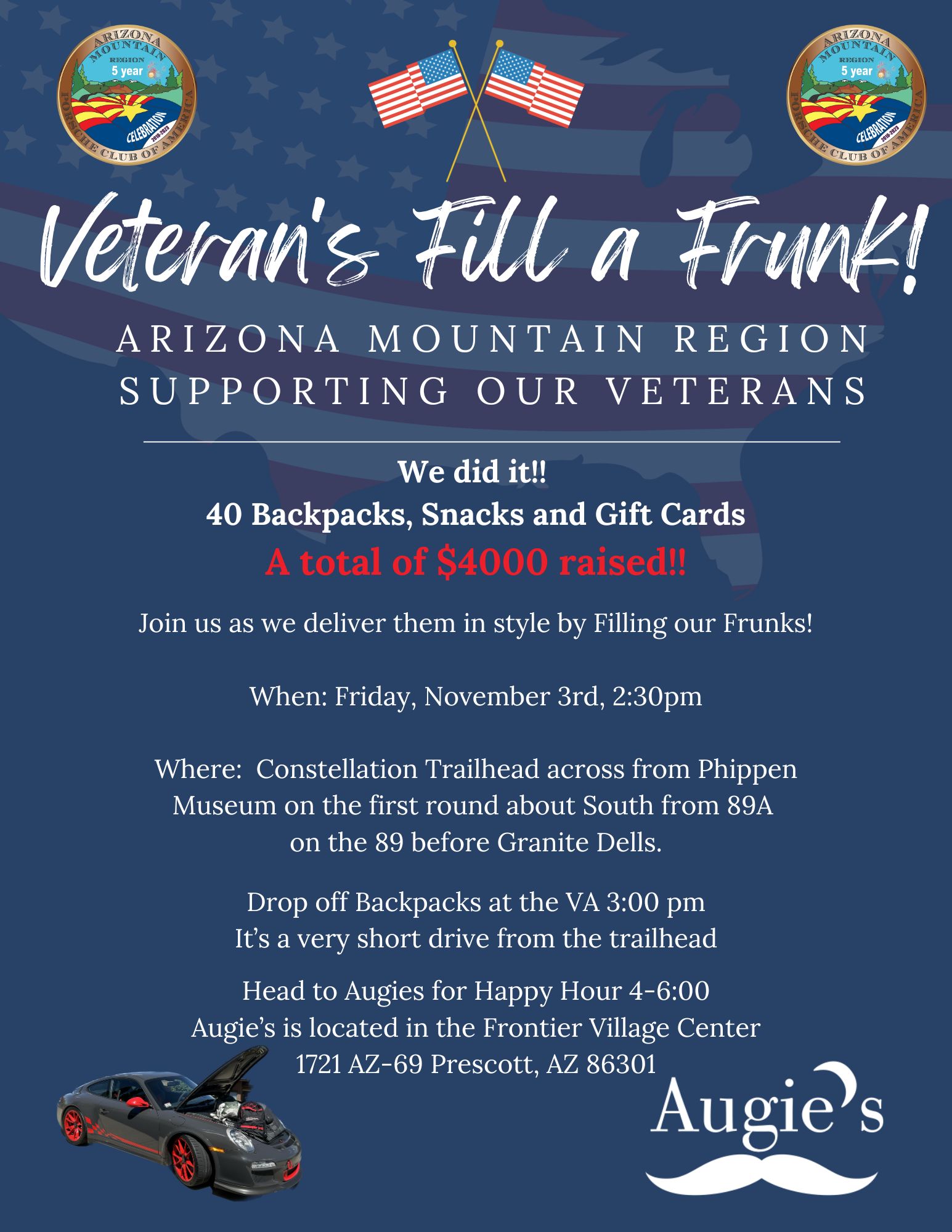 - Donors are welcome to join the “Fill a Frunk” backpack delivery. We want to know who is attending. Please sign up on MSR HERE